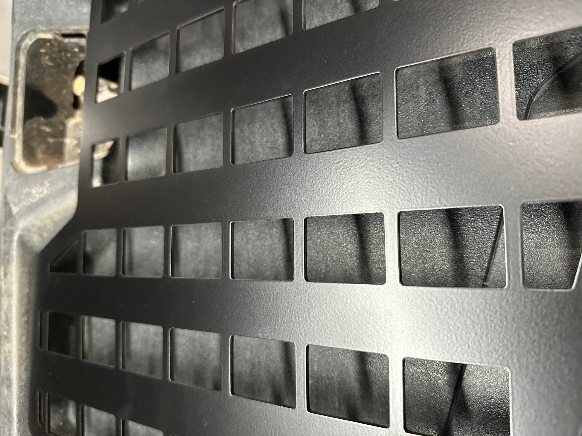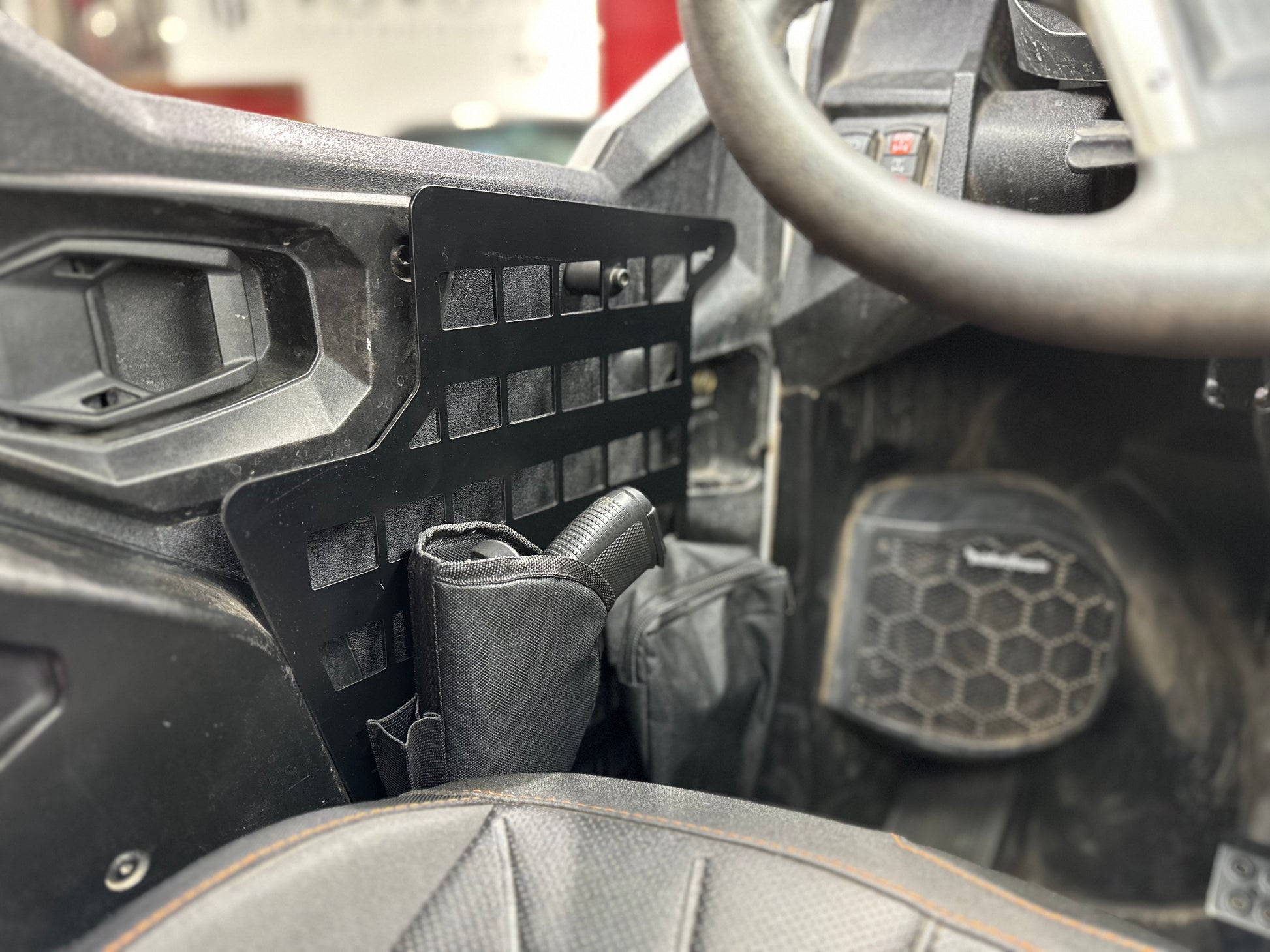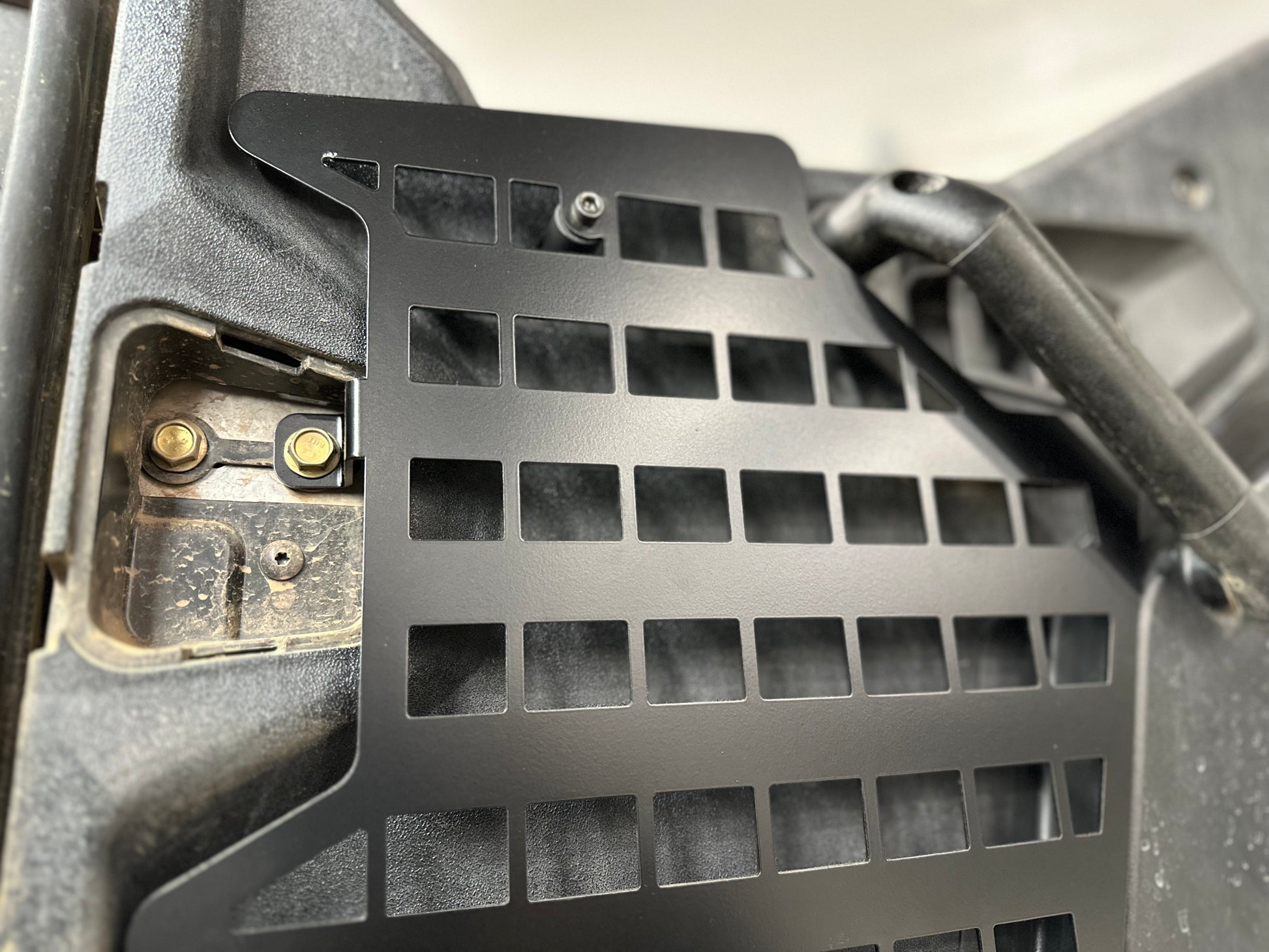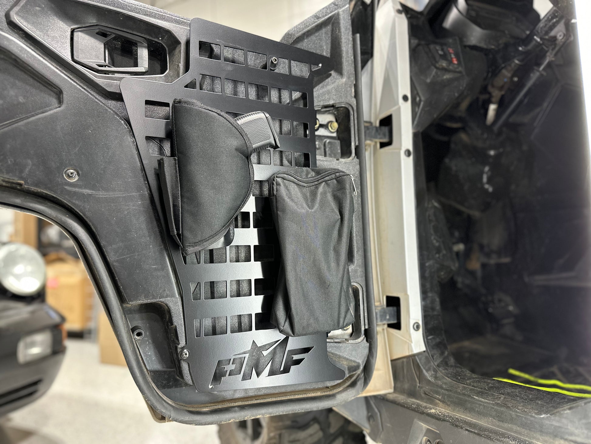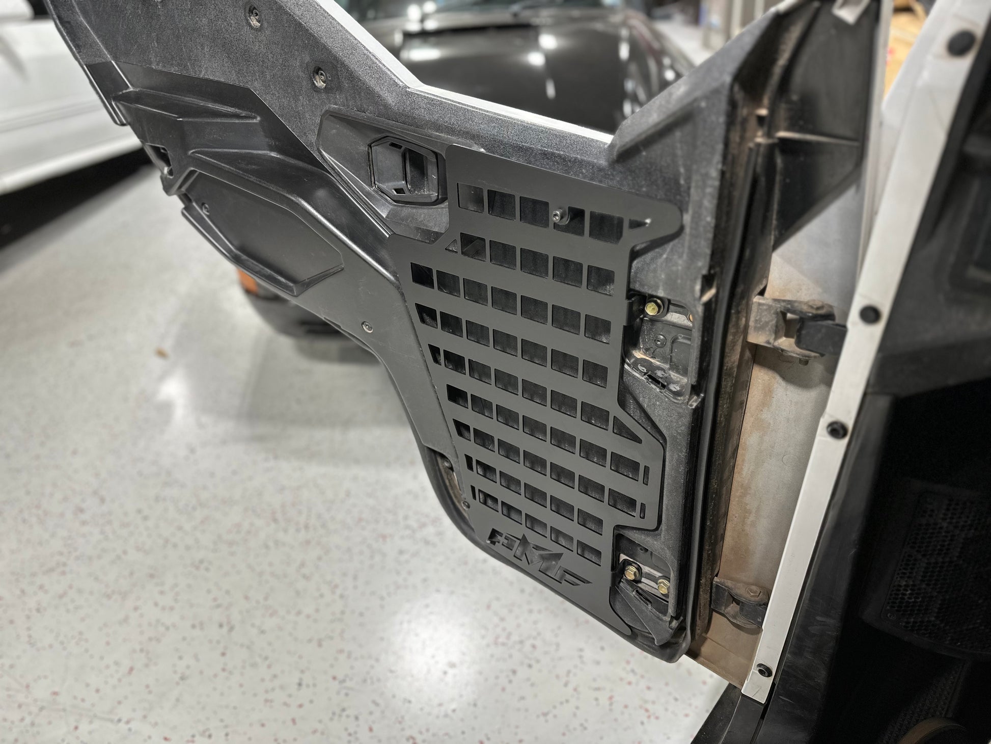 We're incredibly excited to introduce the first set of Patience Metal Fab Side-by-Side "GO GRID" Molle Door Panels for the Polaris General. These units are precision laser cut from lightweight, incredibly strong aluminum, finished in a durable black powder coat and designed to be a direct bolt-in product with no modification required (slight trim on door hinge covers is optional if you want to use them). These are designed with standard/basic molle webbing size for universal fit with thousands of existing accessories and the first of many chassis-specific PMF "GO GRID" Panels coming for your General, RZR and more!